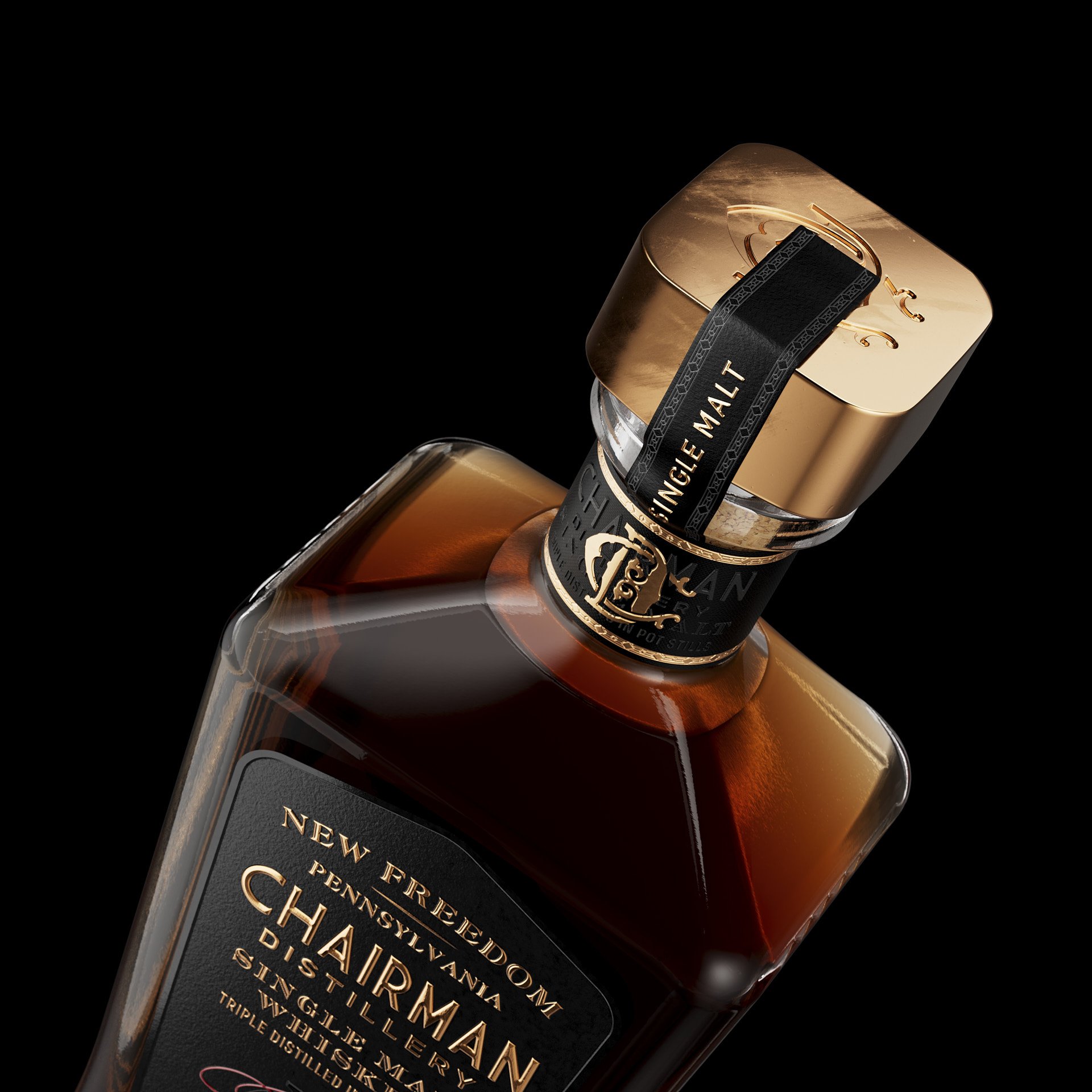 Chairman Distillery, a new venture in Pennsylvania, approached us to create a complete brand identity and packaging system for their Irish-style American whiskey. The challenge was to establish a distinctive presence in the crowded whiskey market while honoring both Irish distilling traditions and American craftsmanship.