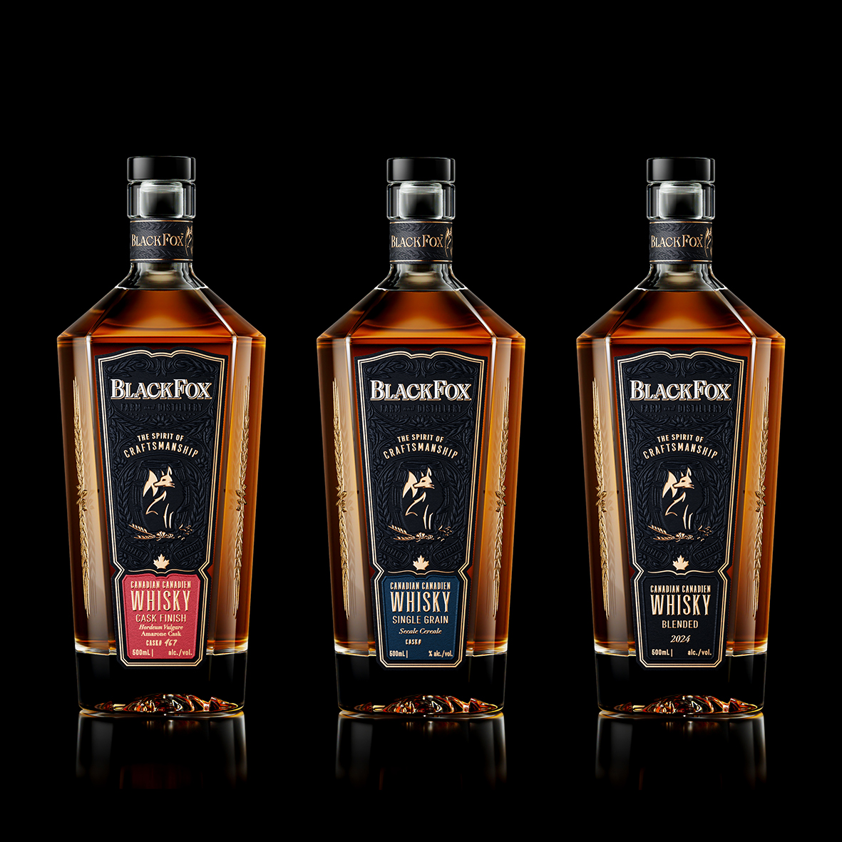 Think Bold Studio teamed up with Black Fox Distillery to create a fresh new look for their award-winning spirits. We wanted the packaging to reflect the same care and quality that goes into every bottle. Inspired by the quickness of the fox and the open beauty of the Canadian prairies, the design blends fine illustrations with bold, modern shapes.