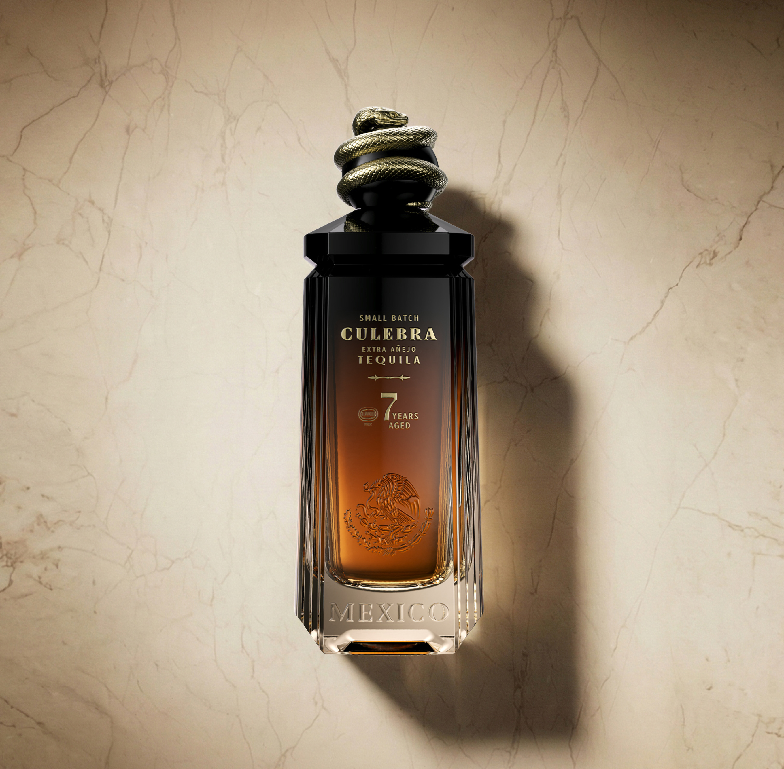 Culebra Extra Añejo, is a visual tribute to the layered history of Mexico City, blending the geometric forms of Art Deco with the fluid mysticism of ancient lore.