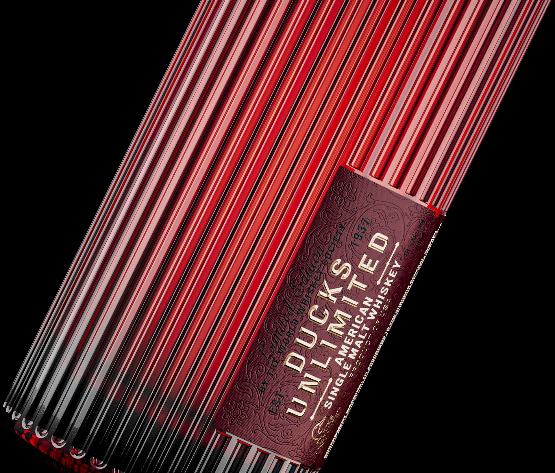 Introducing our latest packaging design for Ducks Unlimited's exclusive whiskey, a limited edition by The World Whiskey Society,– a bold and unique bottle inspired by the iconic shotgun shell. Crafted to capture the rugged elegance and adventurous spirit of the brand. With a striking visual appeal, this design ensures that Ducks Unlimited's whiskey stands out on any shelf, making a powerful statement of heritage and craftsmanship.