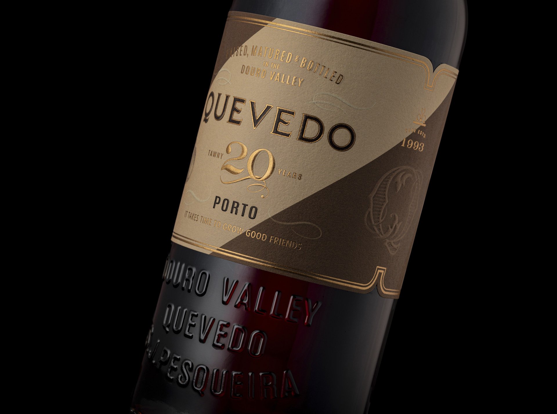 Wine bottle Branding, packaging, and bottle design for Quevedo Wine. "Although the Quevedo Family has been producing Port Wine for more than 5 generations, the actual company was only founded in 1993. This makes them one of the most recent Port Wine Houses from the Douro."